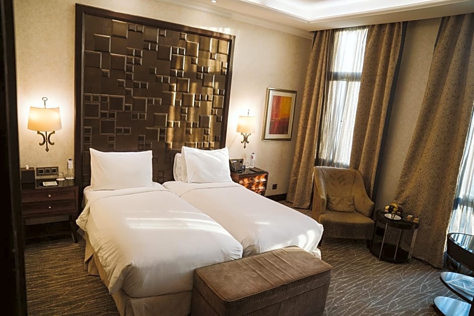 Offering free toiletries and bathrobes, this twin room includes a private bathroom with a walk-in shower, a bath and a bidet. The spacious air-conditioned twin room offers a flat-screen TV with satellite channels, a mini-bar, a tea and coffee maker, executive lounge access as well as city views. The unit offers 2 beds.