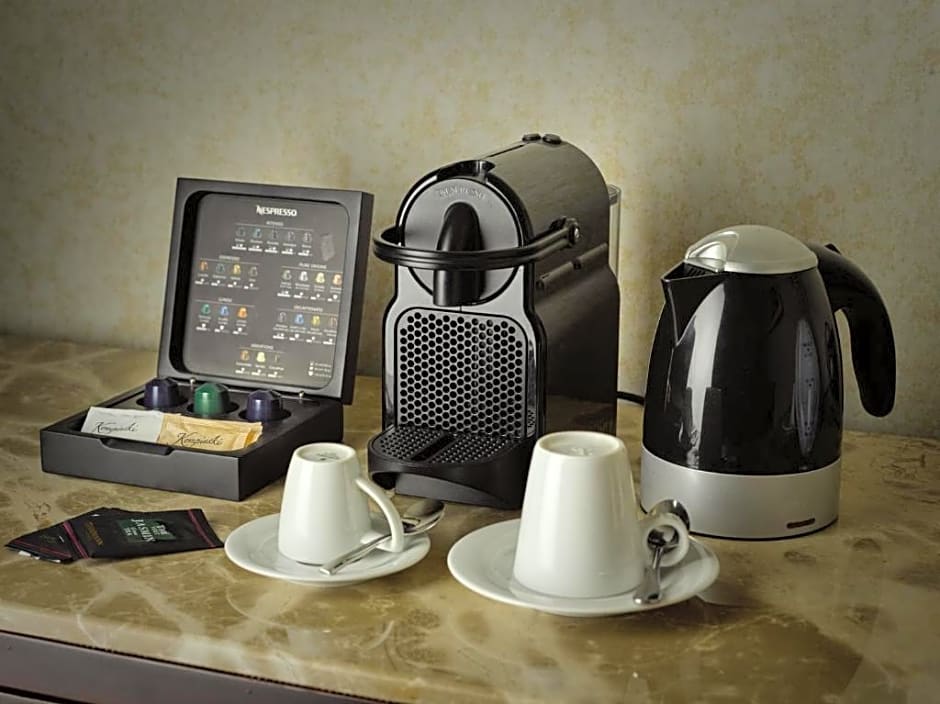 Deluxe Room has city view, with king or twin bed. The rooms feature LED screen TV with 100 channels. Private safe. Mini bar with charge. Free internet access or high speed internet access at an additional charge. Nespresso Machine. Working space. The bathroom includes a bathtub and a separate shower cabin as well as separate toilet.